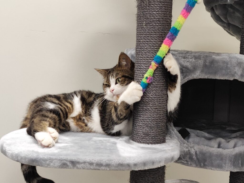 Vous pourrez croiser Bunny de temps en temps à la clinique, prête à offrir un câlin ou à mendier une friandise. Avec elle dans les parages, une visite à la clinique devient tout de suite plus joyeuse !